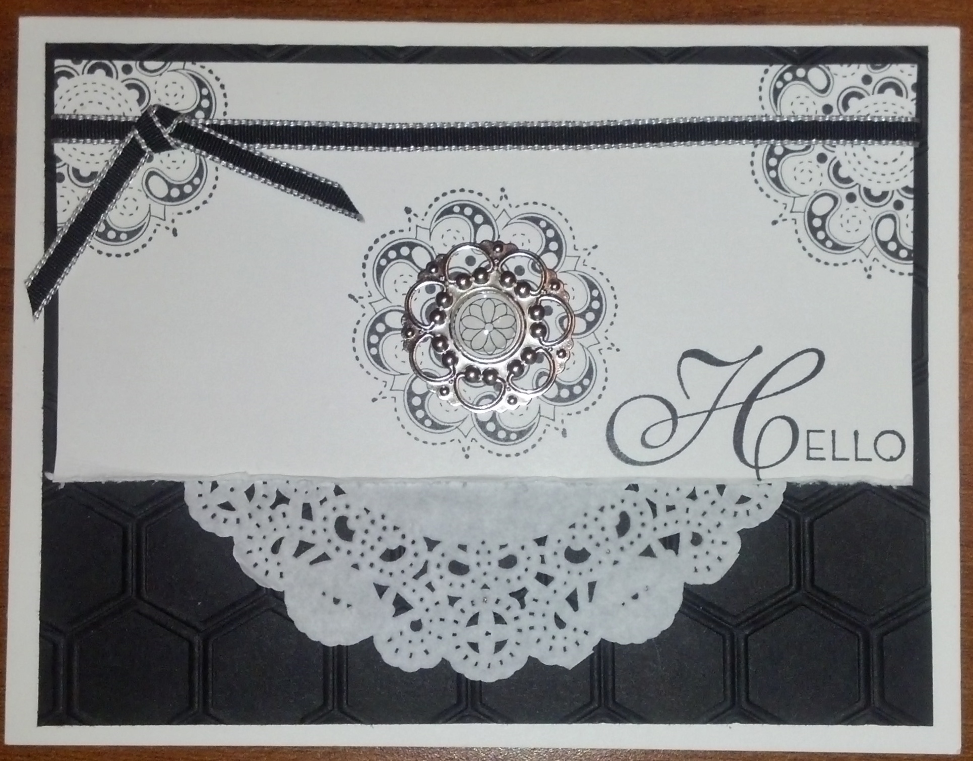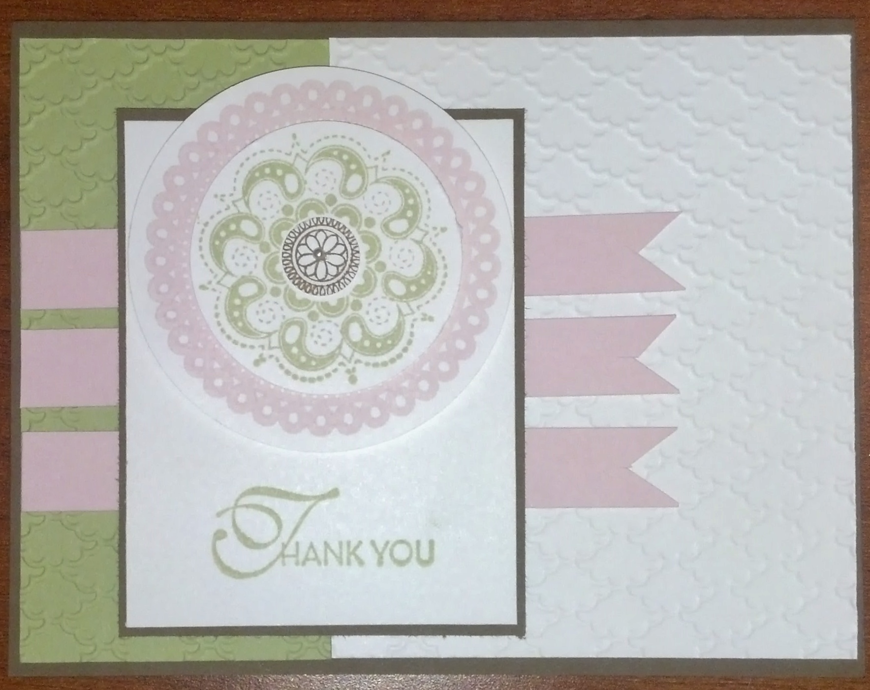 A few friends of mine got together yesterday afternoon for a Shoebox Swap using the Lacy & Lovely stamp set from Stampin’Up! We created four designs and a little surprise in the mix.