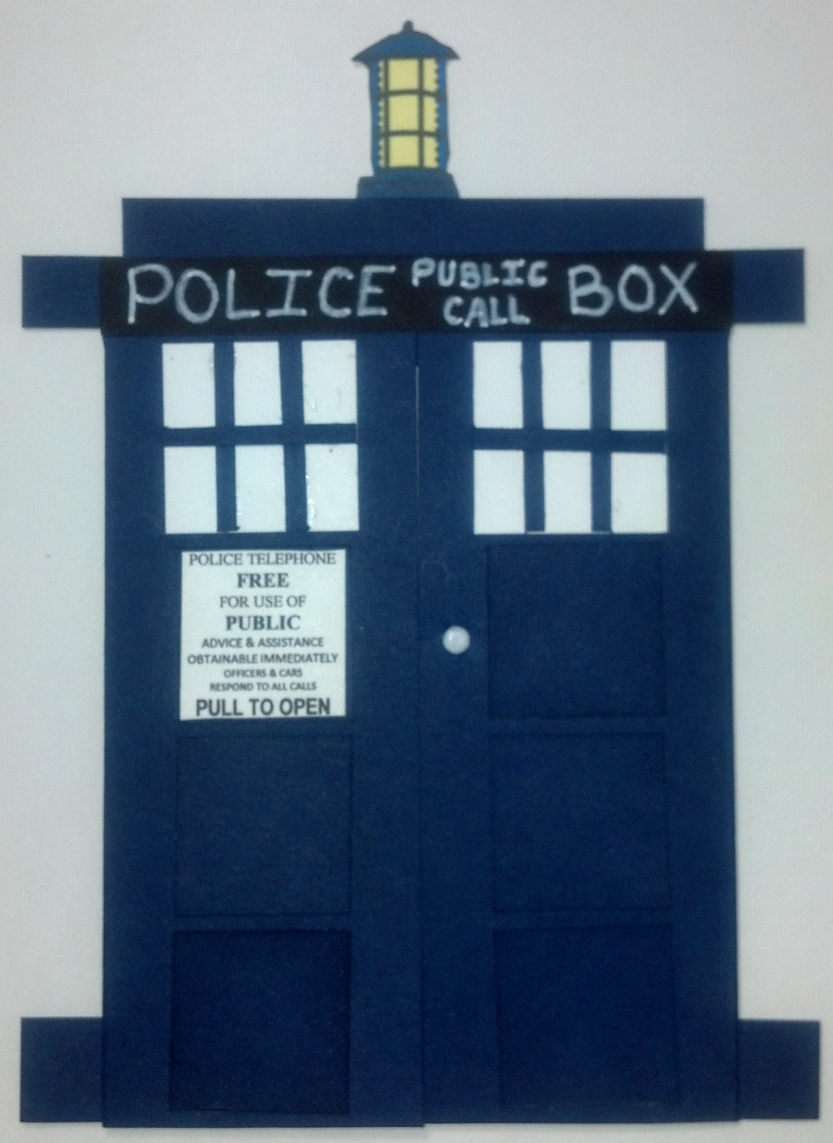 My daughter’s friend loves Doctor Who so she looked up cards resembling the Tardis. She found a sample on Jennifer Jackson’s blog (a fellow Stampin’Up! demonstrator) and asked me to replicate it. So below is my version of Jennifer’s Tardis card. I added the lamp on top and printed the verbiage on the door panel to give it a more authentic look. Thank you Jennifer!