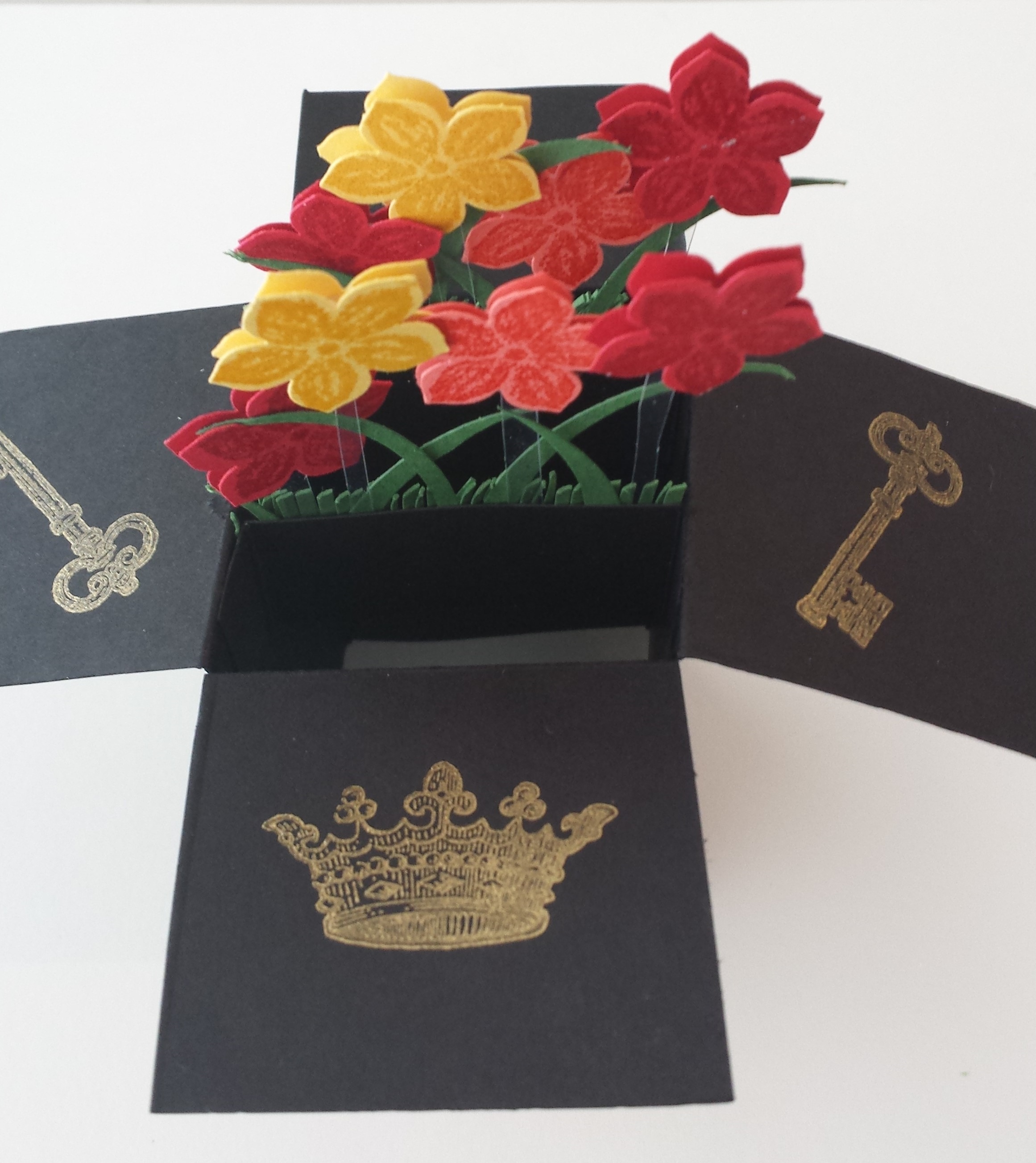 This is the birthday card I made for my niece last week. Her favorite color is black but I wanted to make a festive card so this is what made. I hope you like it, she did! I got the idea from Stamping School’s Pop Up Box card.