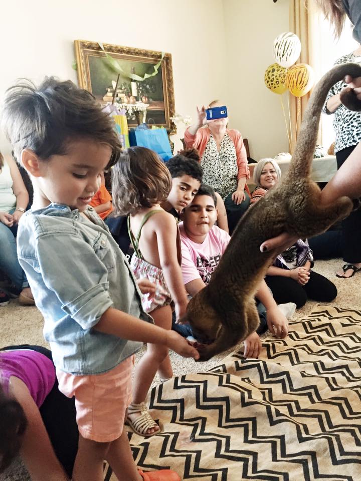 This birthday boy had a big surprise coming to him at his birthday party, his parents arranged to have an array of animals at his party from http://www.ExtremeAnimals.org. It was very entertaining and fun to watch, and of course there was a live Ring Tail Lemur there!