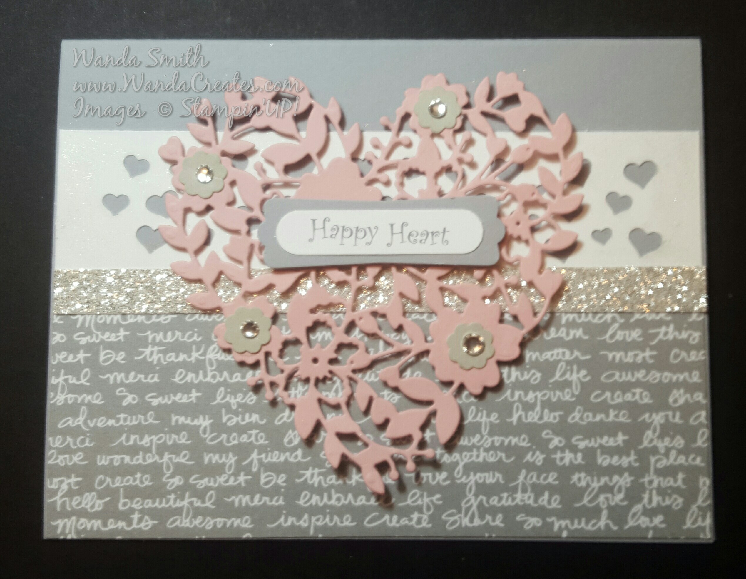 One of my favorite new products in the Occasions Catalog is the Bloomin’Heart Thinlits Dies. Just take a look at the intricate heart, I love it! I used it for one of my monthly Oviedo Mall Stampers class and it was a hit!