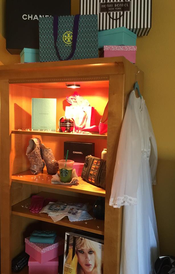 The theme was Breakfast at Tiffany’s and my sister added a Boutique Effect by bringing down shoes, boxes, handbags and bags from her daughter’s closet!
