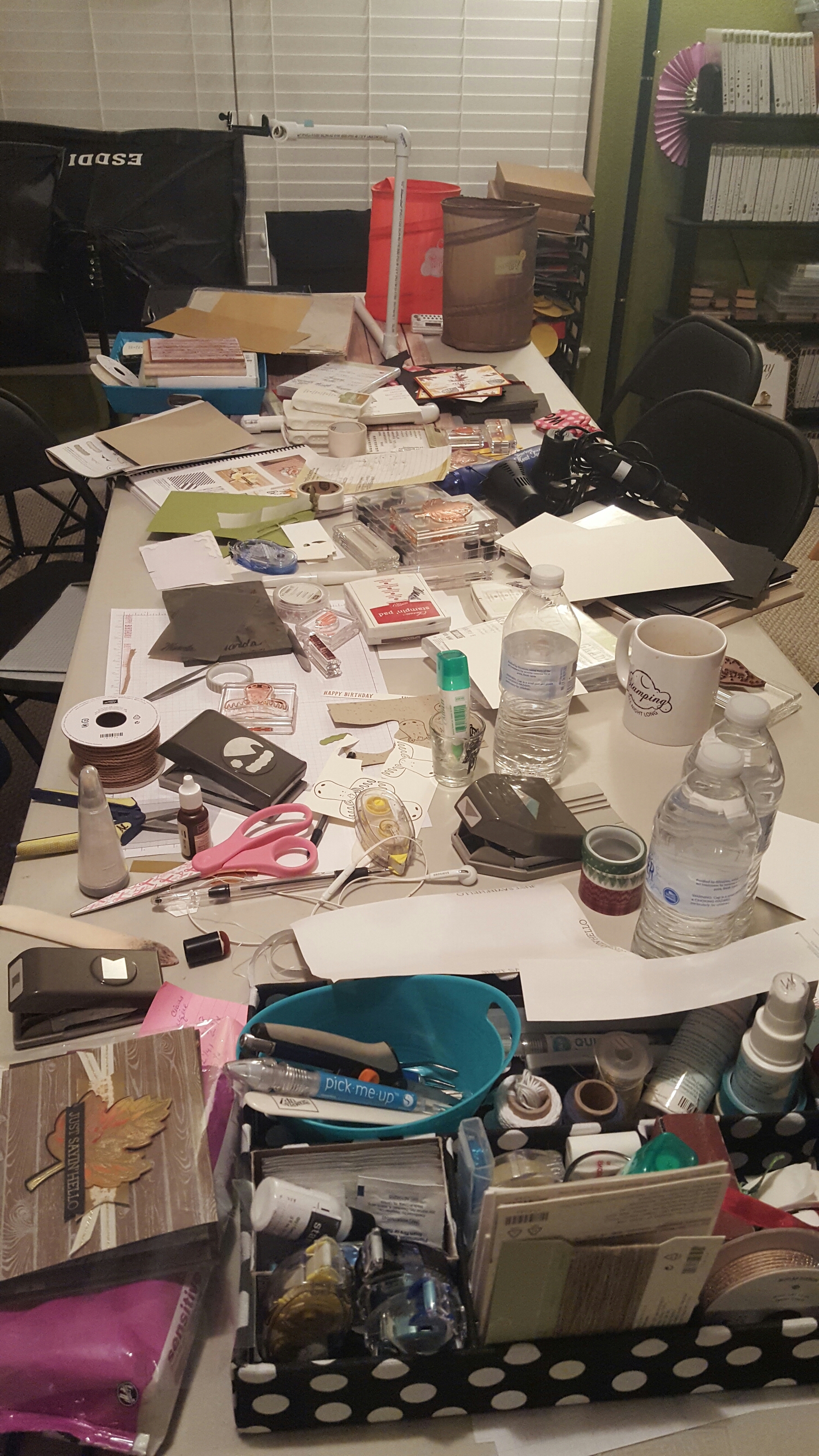 I promise when I started working on my cards there was a clean table there. How do I make such a mess and spread it out so much?