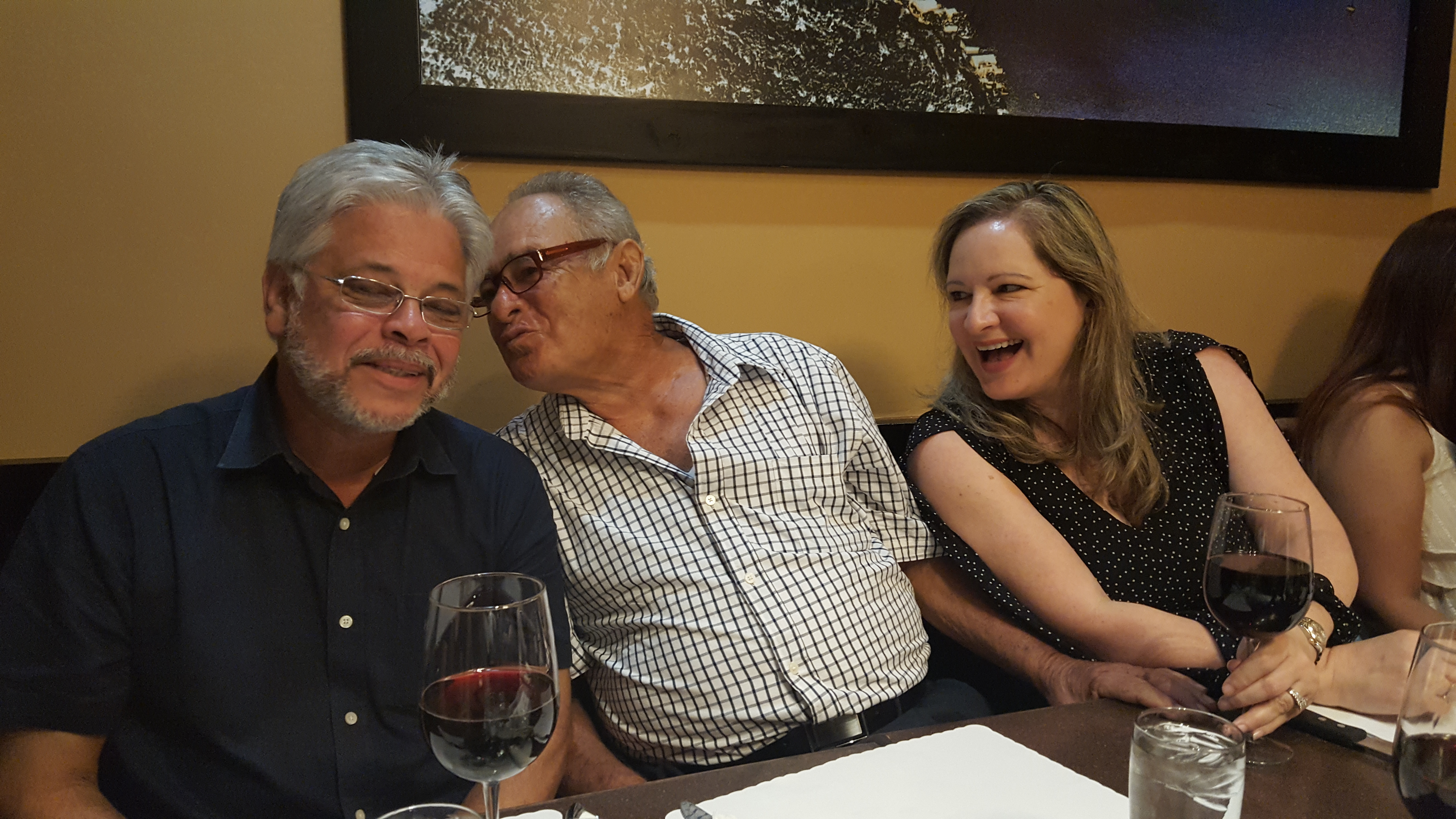 Rehearsal Dinner, my brother-in-law, my dad and my sister clowning around.
