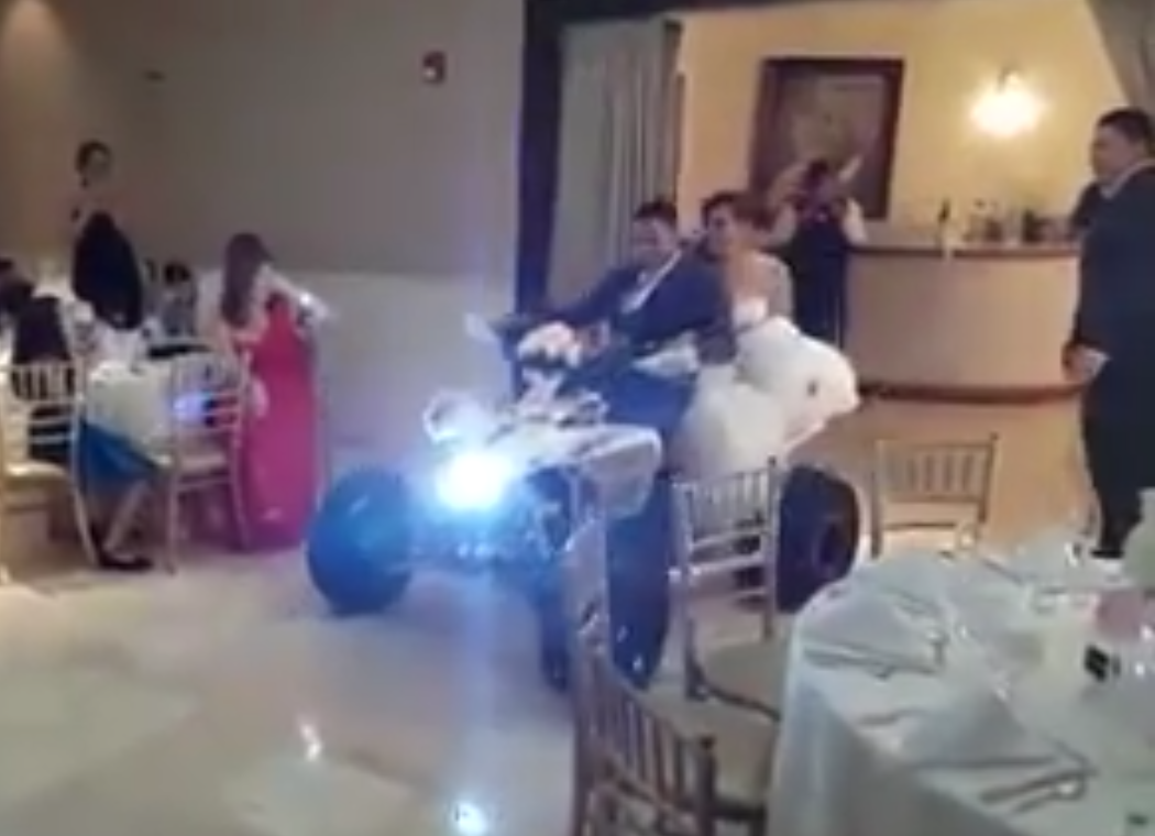 They also made a grand entrance on a ATV, the picture is a little blurry.