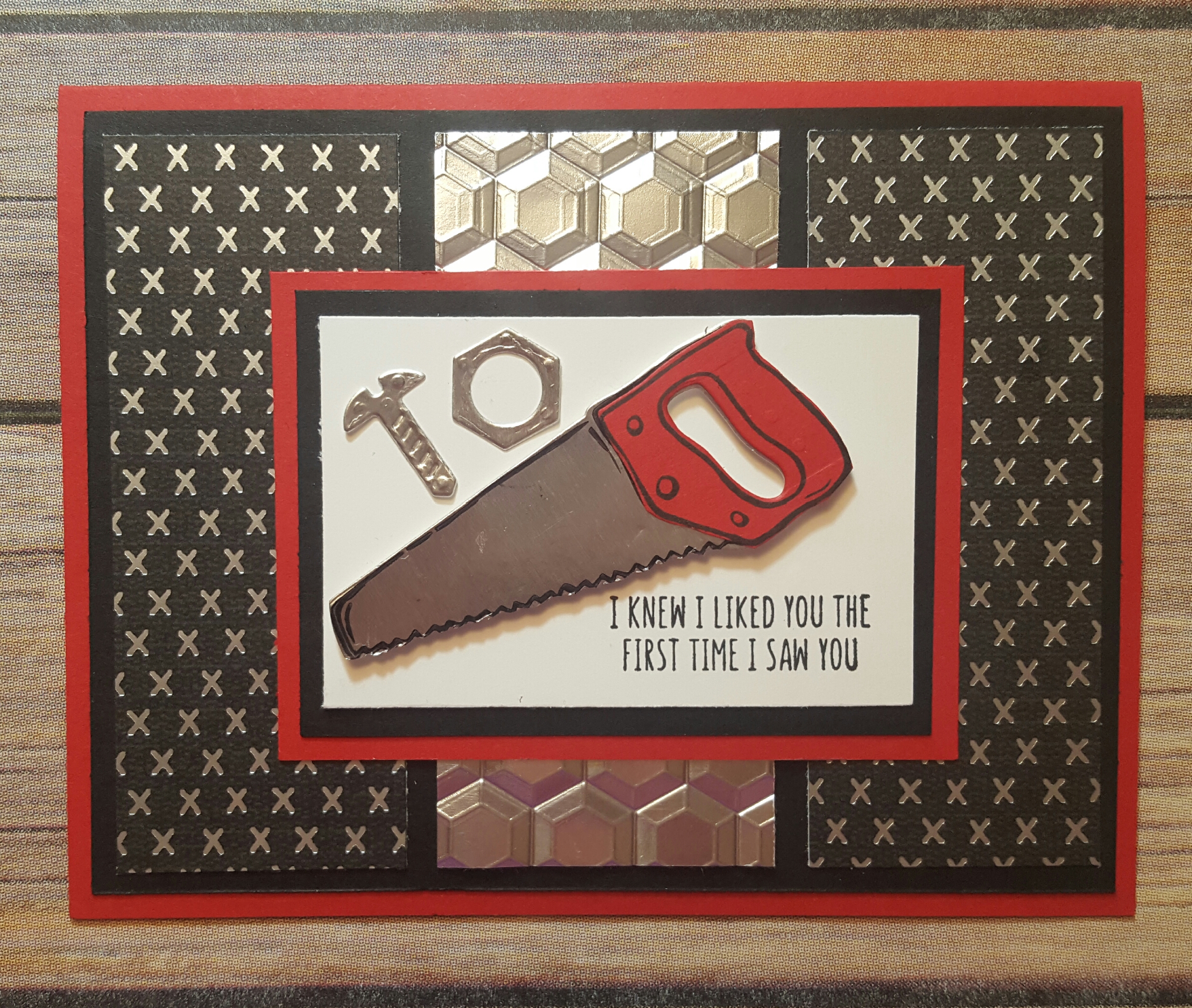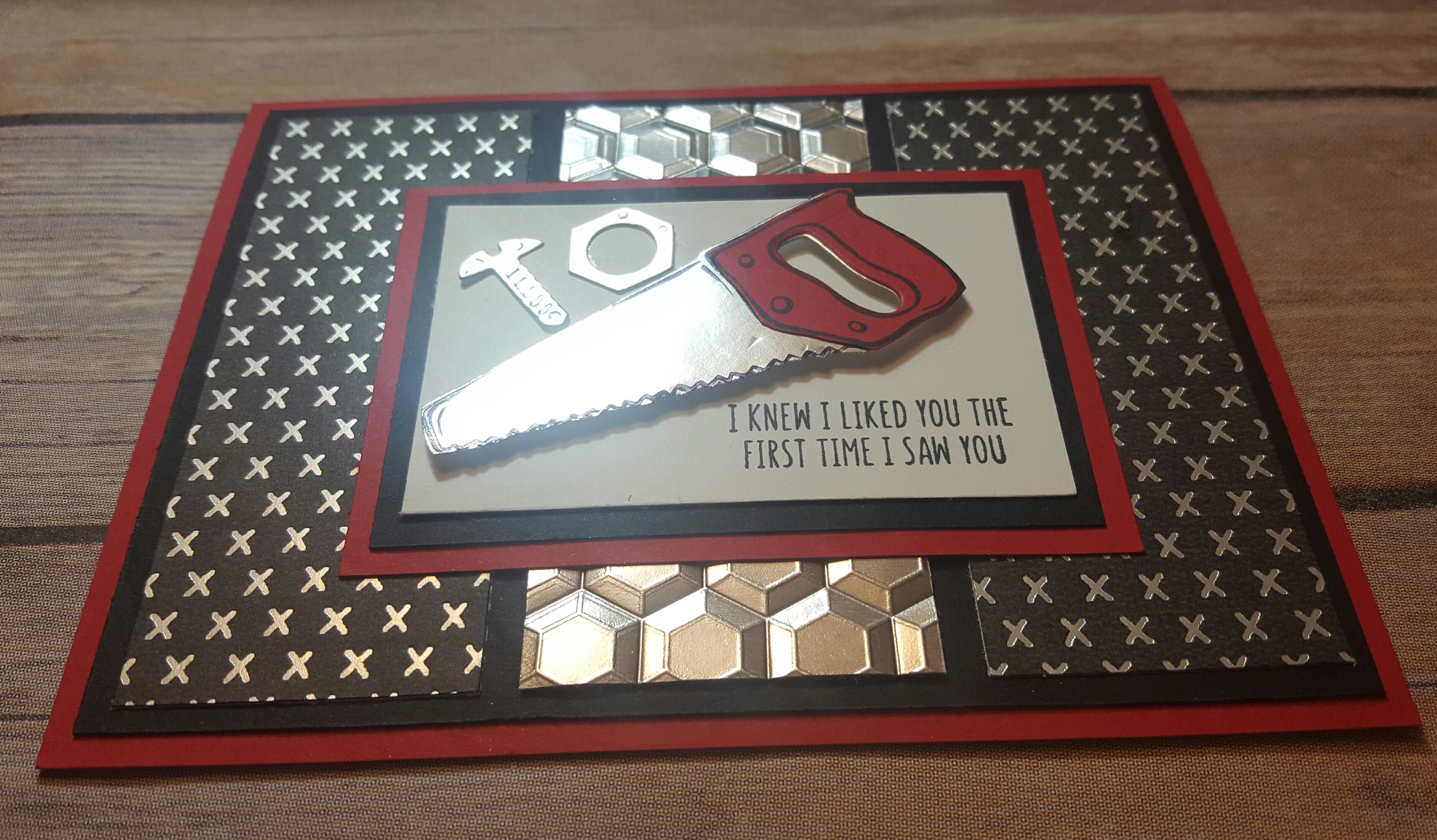 Here’s the card I made for him, I cased this card from Stamping School.