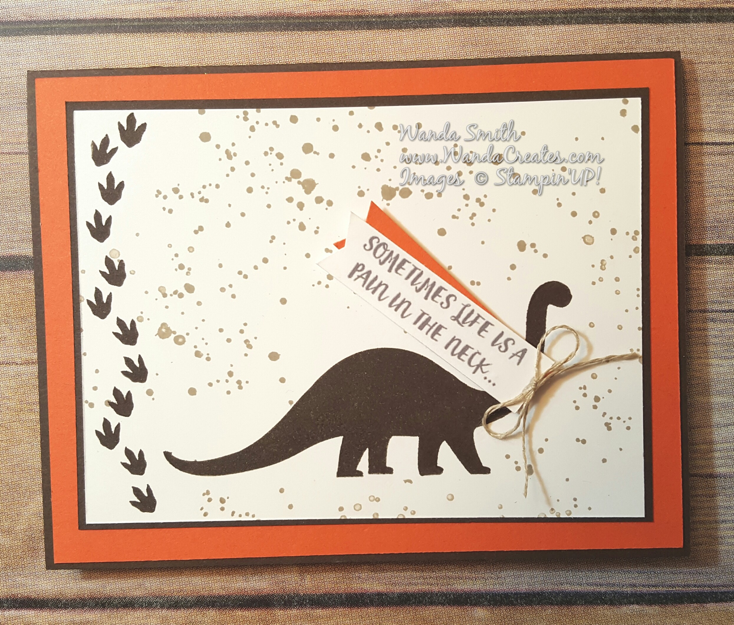 For my monthly mall class I challenged myself to create a dinosaur card that wasn’t geared towards kids . It was a bit of a challenge until I paired the ‘No Bones About It‘ stamp set with the ‘Here for You‘ stamp set. I think it worked!