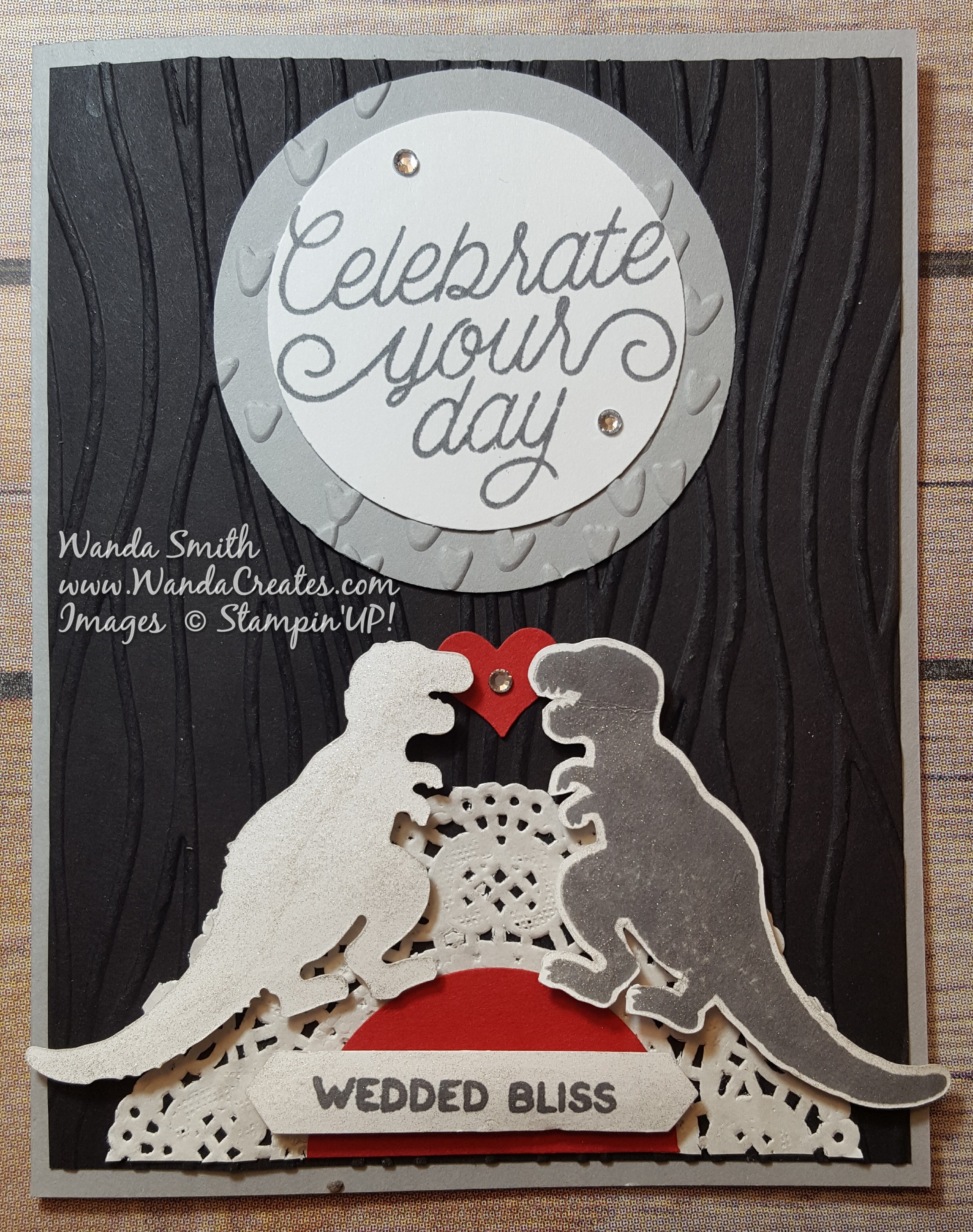 My niece saw this card and then asked me to make a wedding card with a dinosaur theme. She was attending a wedding in the Orlando Science Center and the reception was being held in the Dino Hall. Here are the two cards I made, one for my niece and one for my sister who was also attending the wedding.