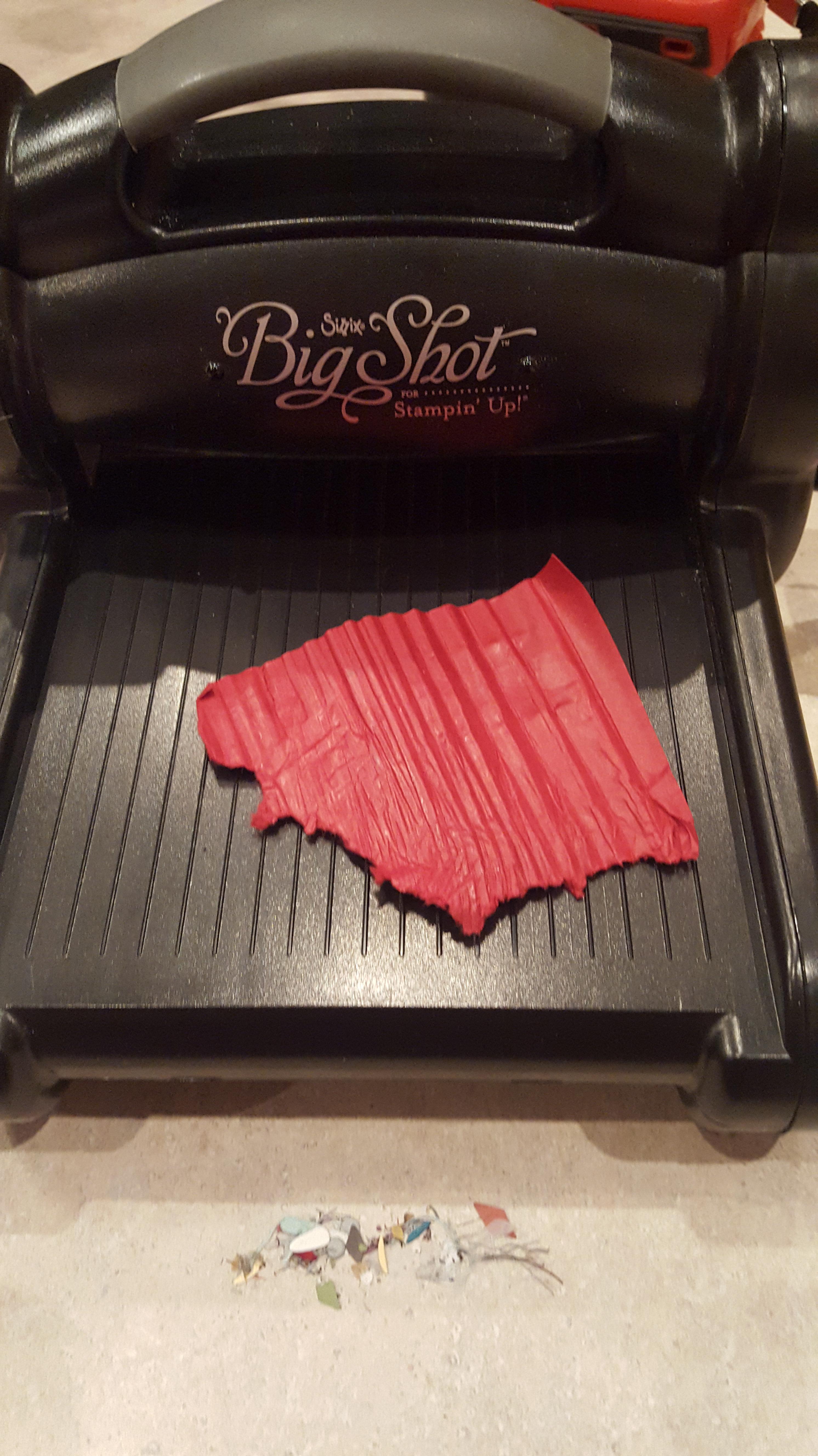 Note to self and everyone out there with a Big Shot…DO NOT put a paper shim as your bottom layer in your Big Shot. It can get crinkled up and roll into the middle area of the Big Shot this is the only way to get it out.