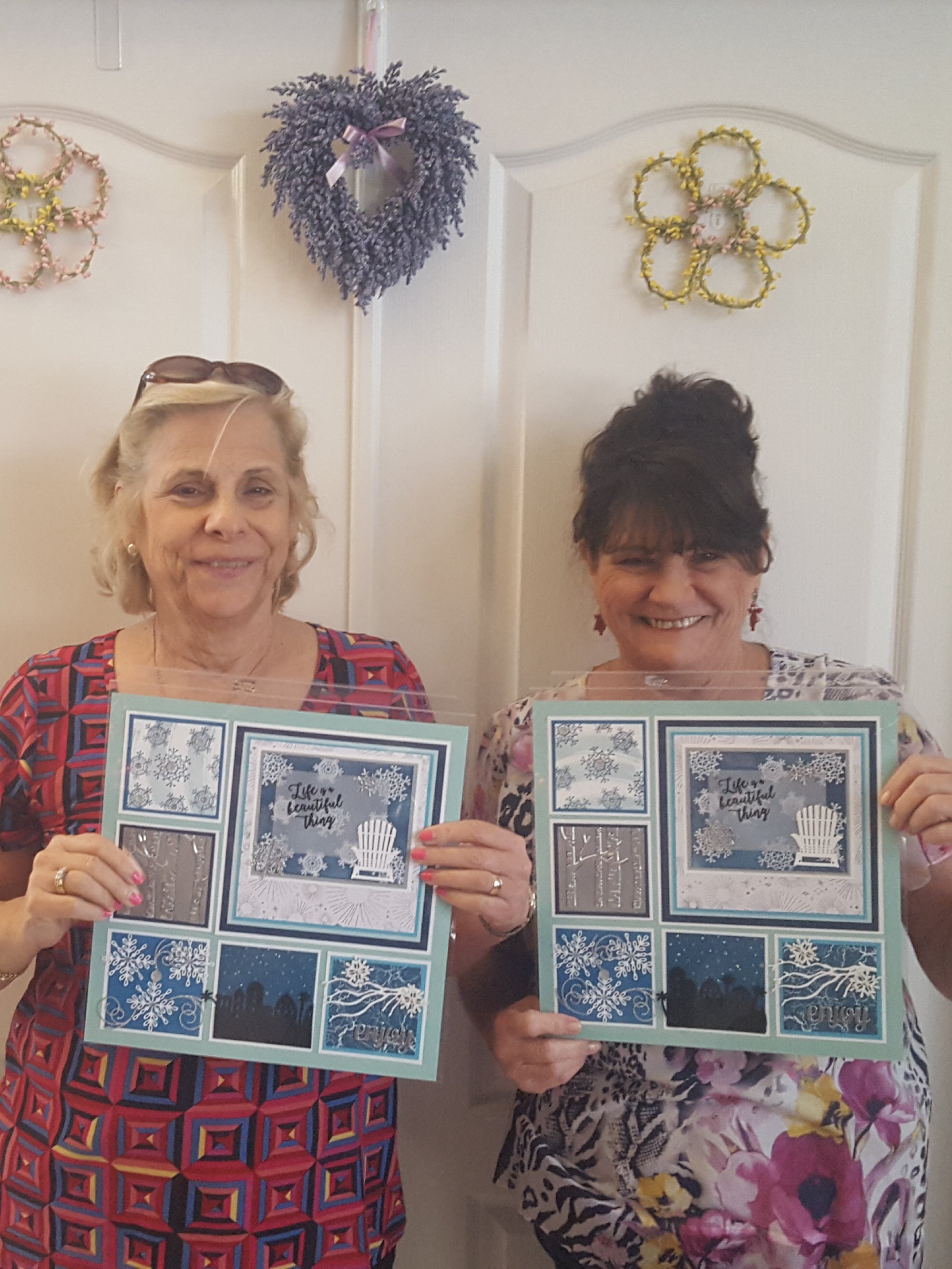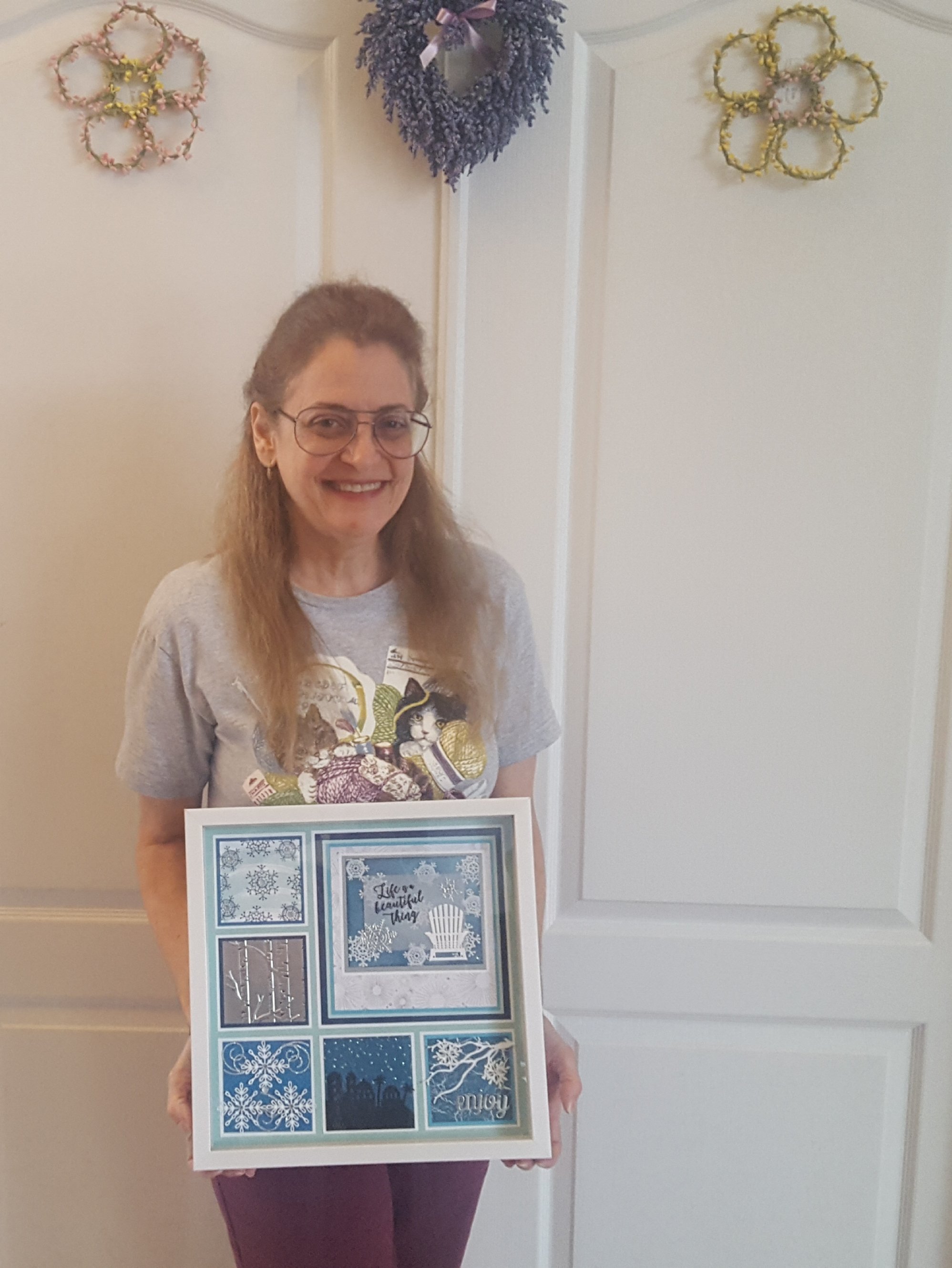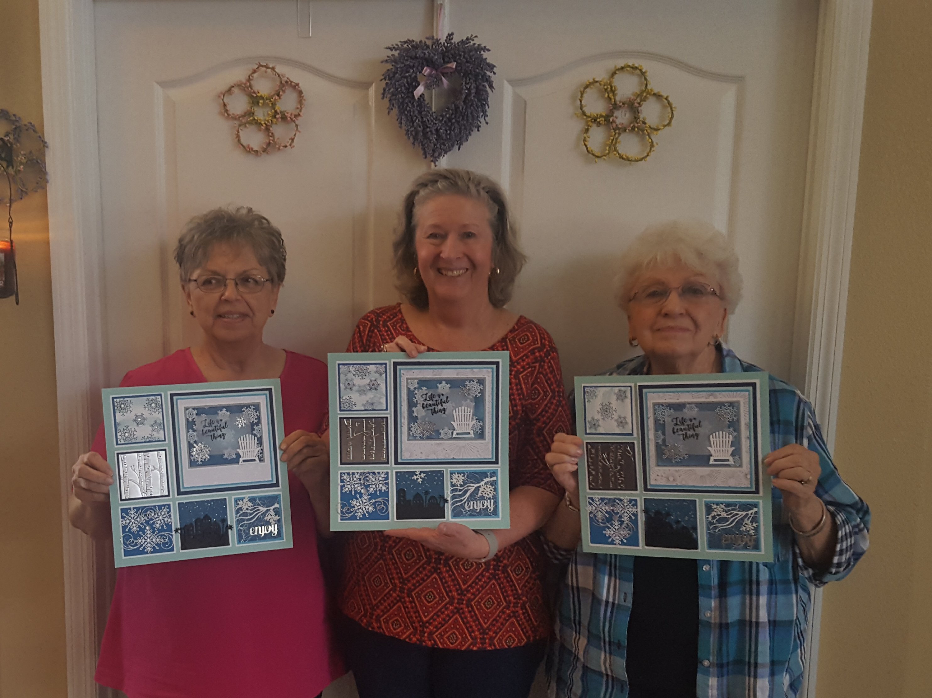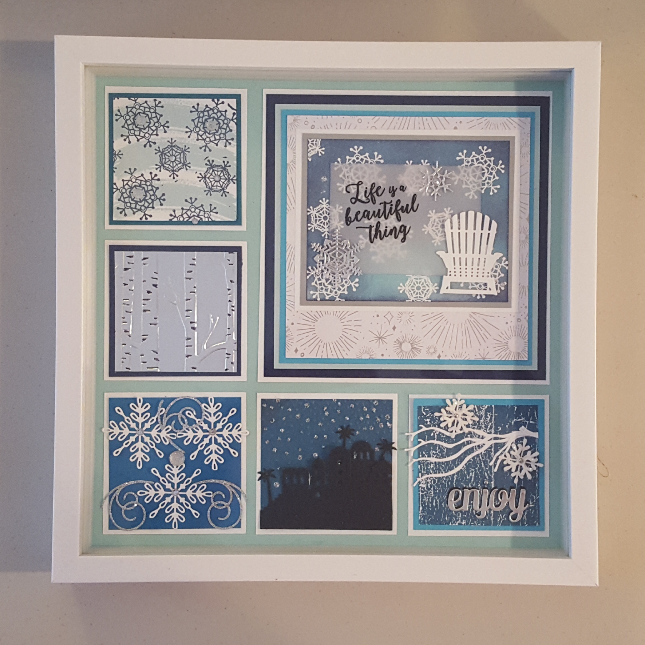 Yesterday I had 10 wonderful stampers at my house for the first round of the Winter Shadow Box Class. They all had a great time and made these lovely Shadow Boxes that my friend Debra LaFountain and I designed.