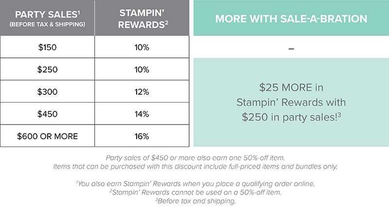 When you host have a qualifying party with at least $250 in sales during Sale-A-Bration, you’ll earn $25 more in Stampin’ Rewards! These rewards can even be applied towards a Starter Kit, allowing you to also join and become a demonstrator.