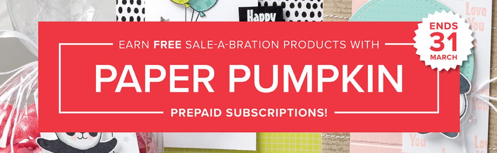 Sale-A-Bration is a perfect time for Paper Pumpkin Prepaid subscriptions. Why? Sale-A-Bration is the one time during the year you can earn FREE Stampin’ Up! products as a Paper Pumpkin subscriber.
