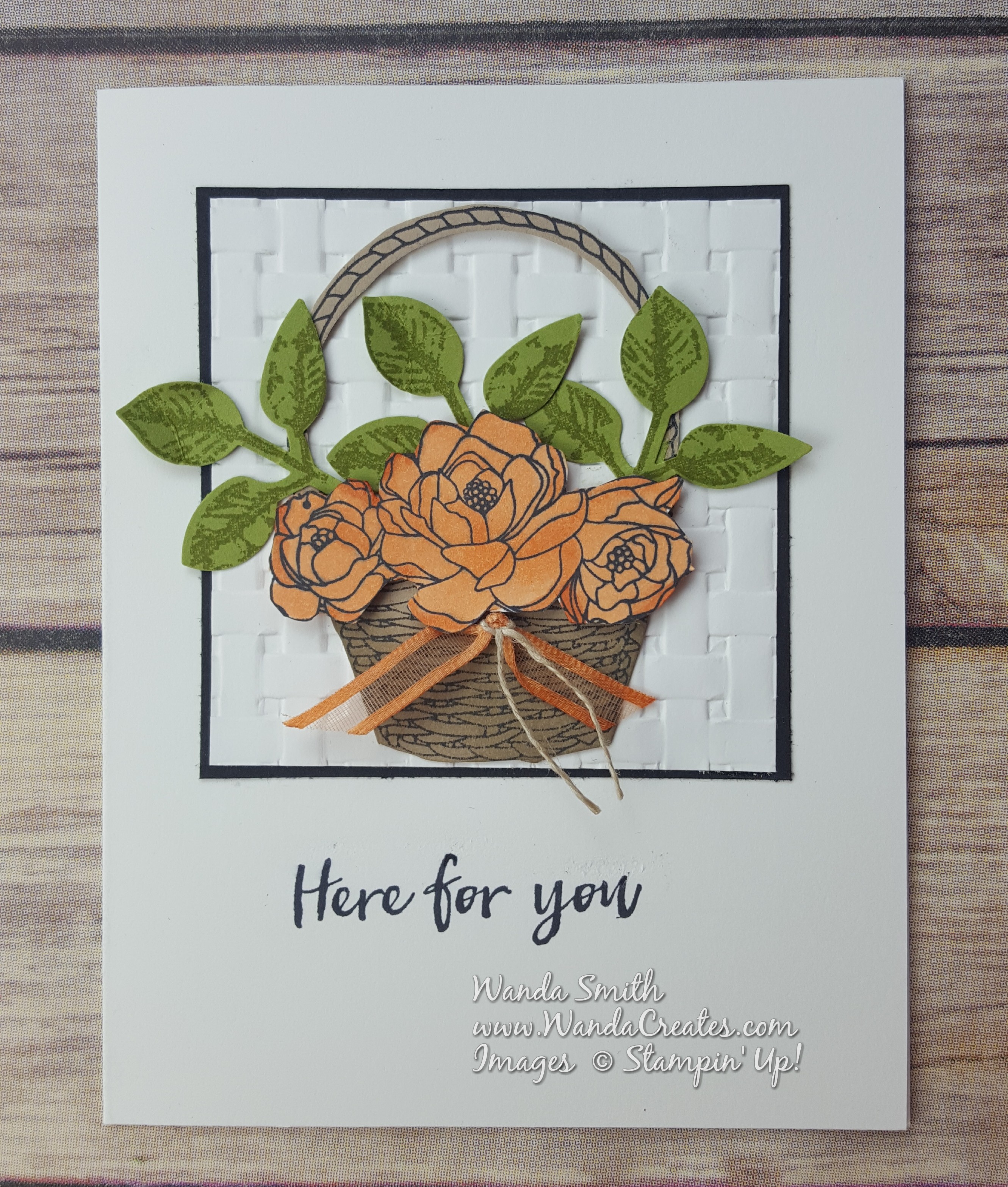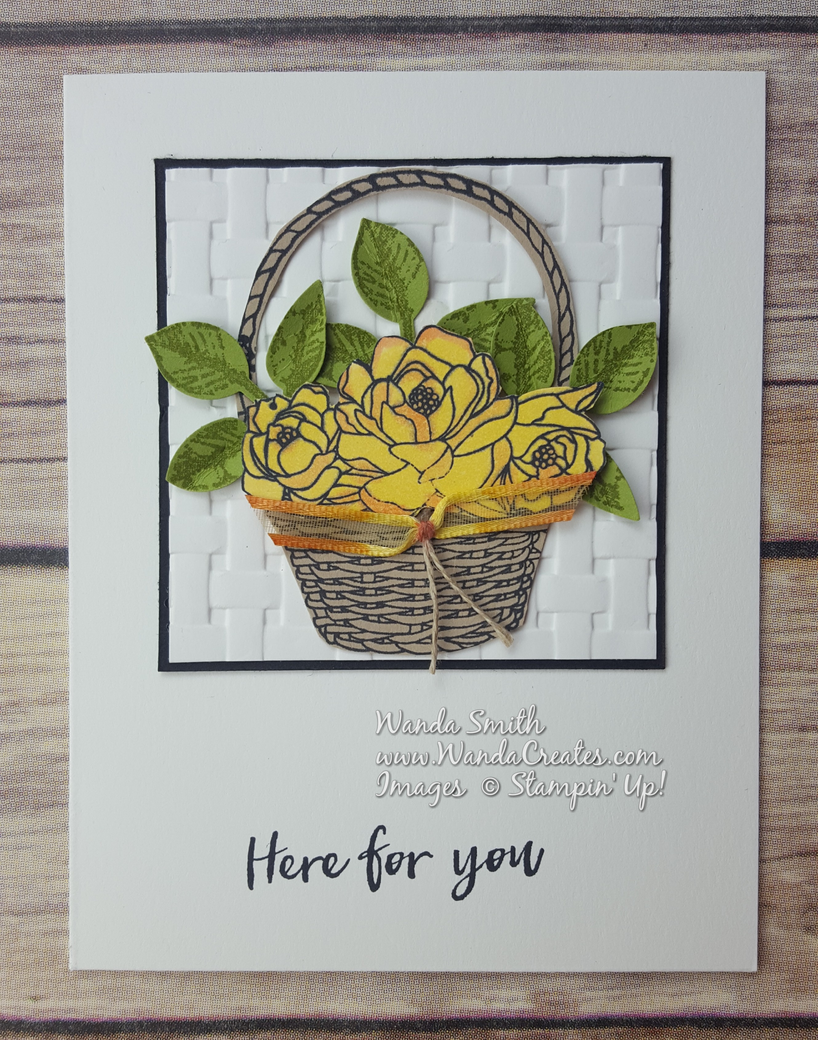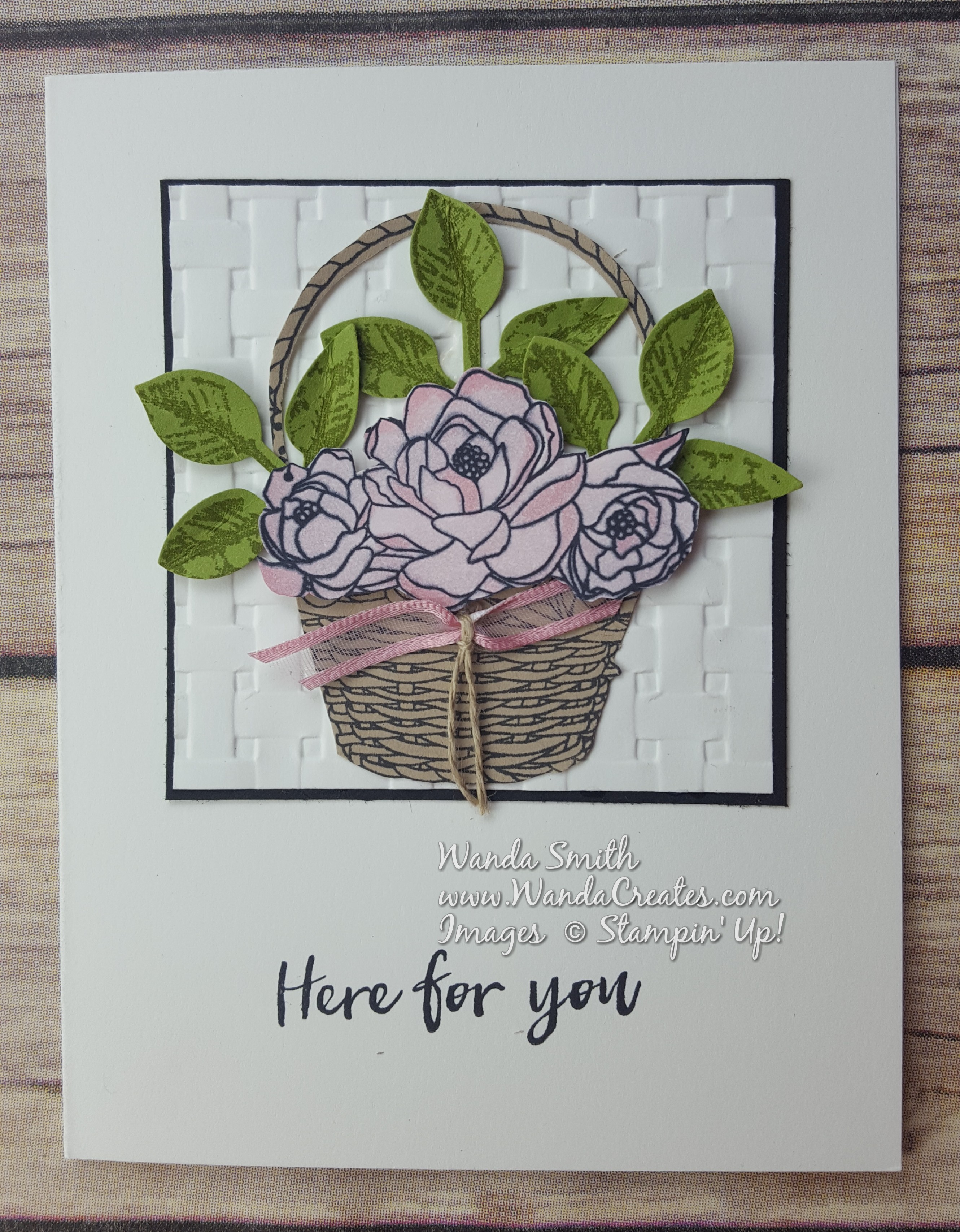 Every time I saw a card made with the Blossoming Basket Bundle I cringed at the fussy cutting needed if you wanted the basket and flowers to pop. Then I figured out that if you use the 1-3/4″ Circle Punch you can almost get a perfect cut of the inside part of the handle. Then there was the coloring of the flowers…not so hard with my messy blending technique.