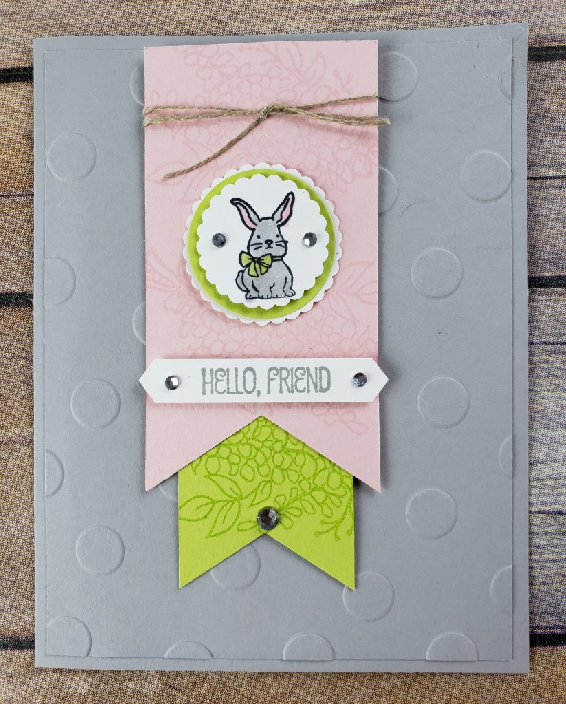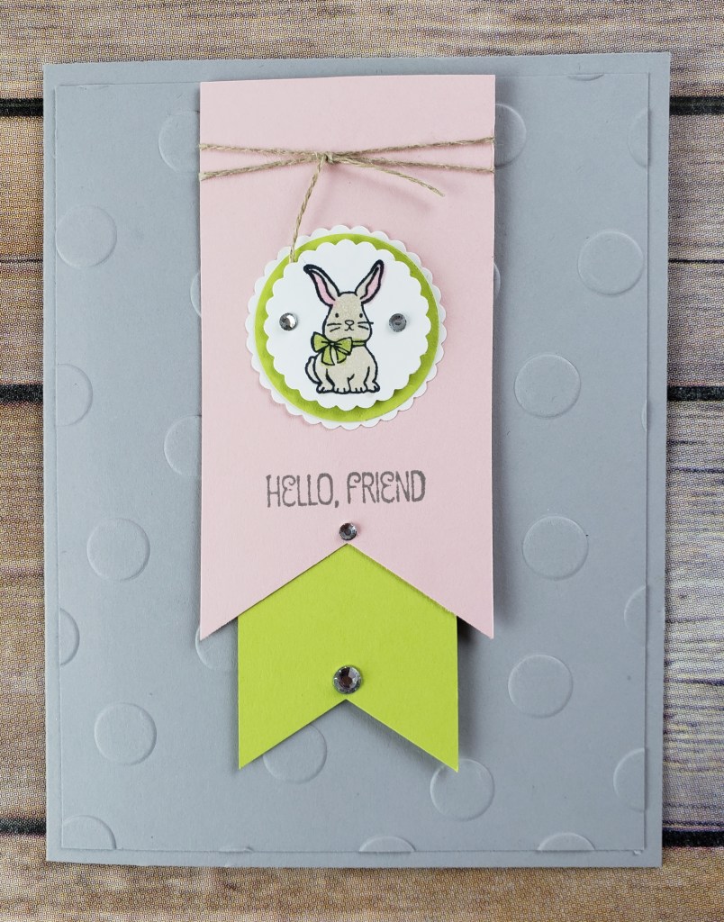 With Easter just a week away I had my stampers from my Stamp-A-Stack class make this cute Hello Friend Bunny Card. This card can be used for Easter or any other occasion.