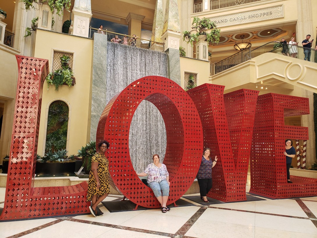 My Stampin’Amigas, Cydra, Debra and Patti headed out to the strip. We visited the Venetian and Paris hotels. We found some love at the Venetian, that’s me on the “E”.