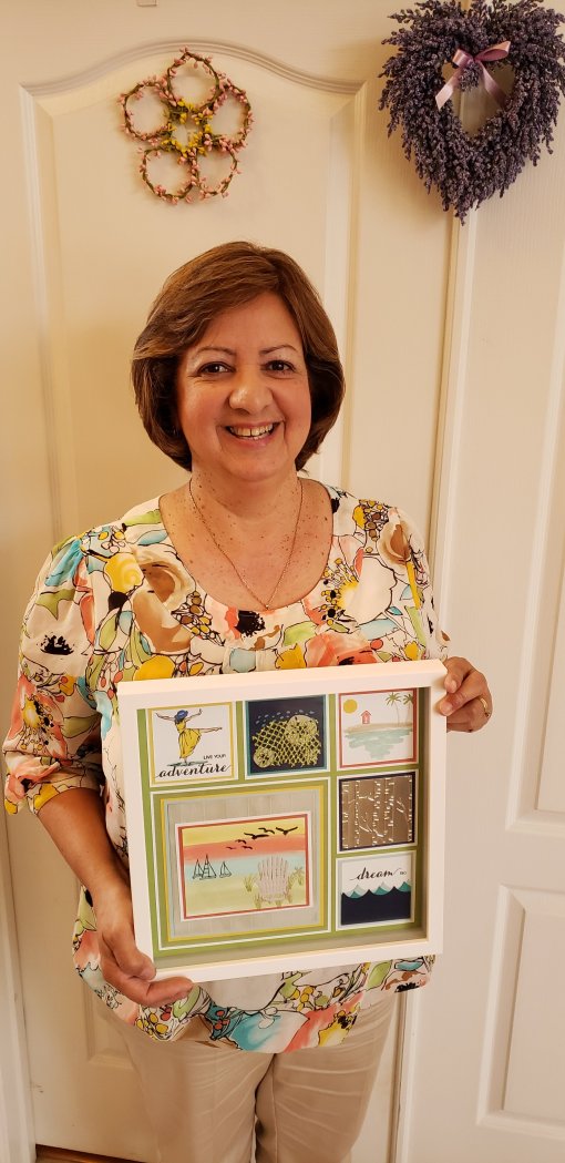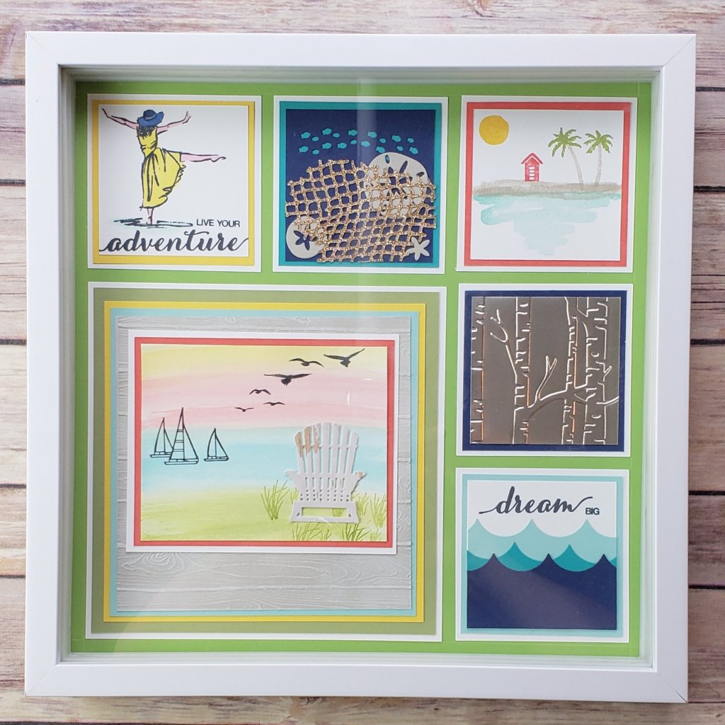 My friend Debra and I had our Summer Shadow Box classes this weekend and it was a success! We had 15 stampers during Saturday and Sunday for a total of 22 kits. A few of my stampers left before I had a chance to take the customary photo but here are the rest.