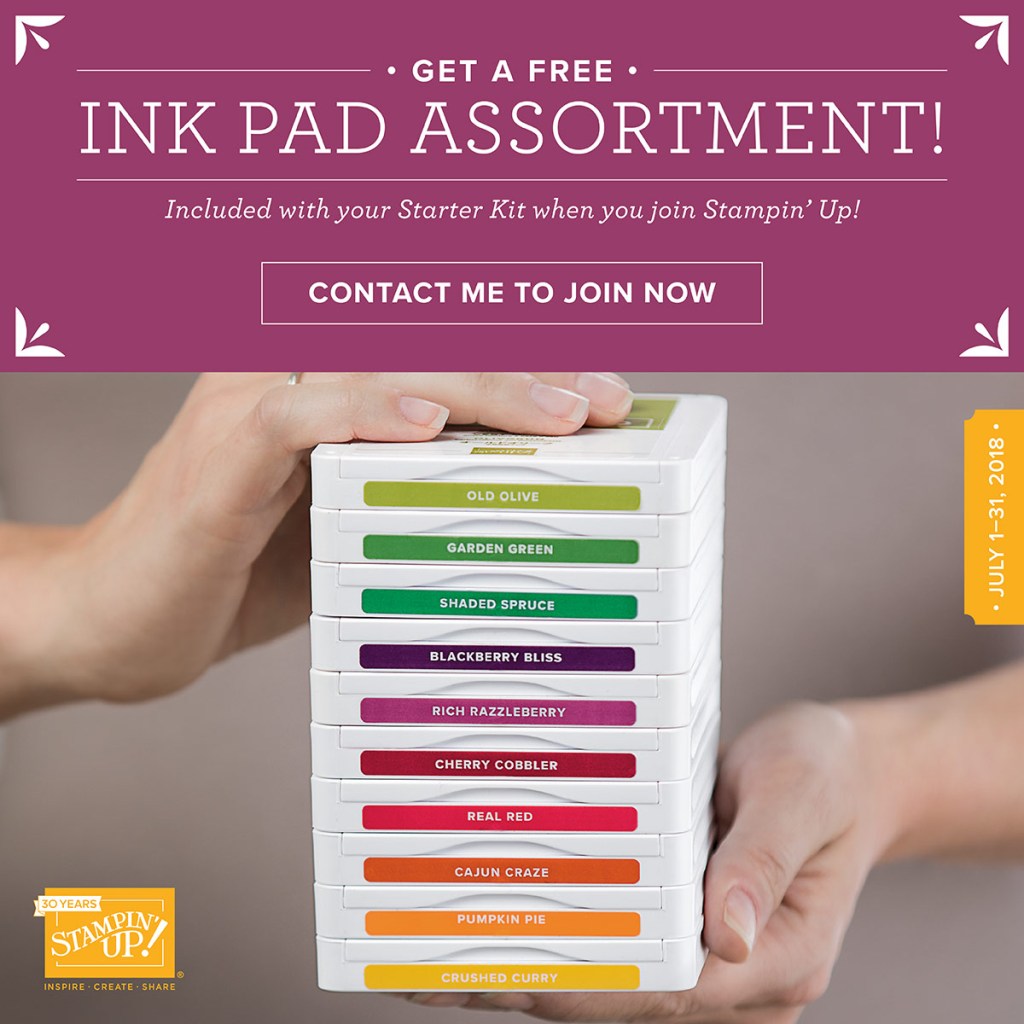 • Free Assortment of Classic Stampin’ Pads available only to new demonstrators who submit applications within promotion dates.
