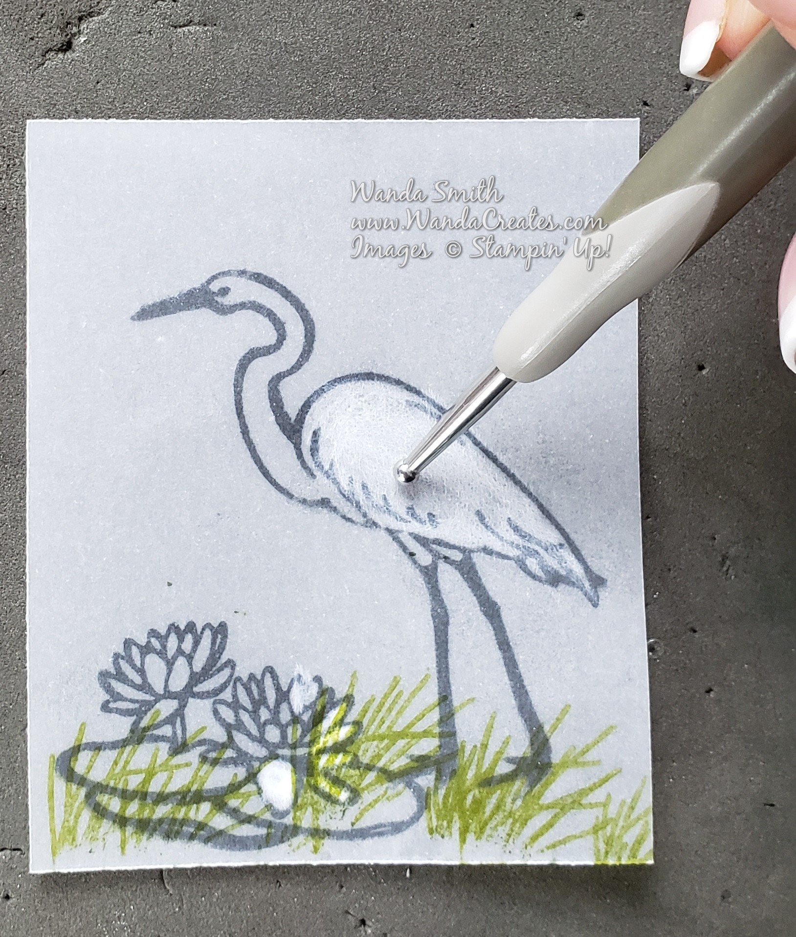 With the stylus, you can lightly scratch the back side of the stamped image. Doing this will raise/puff up that area while turning the vellum cardstock white.