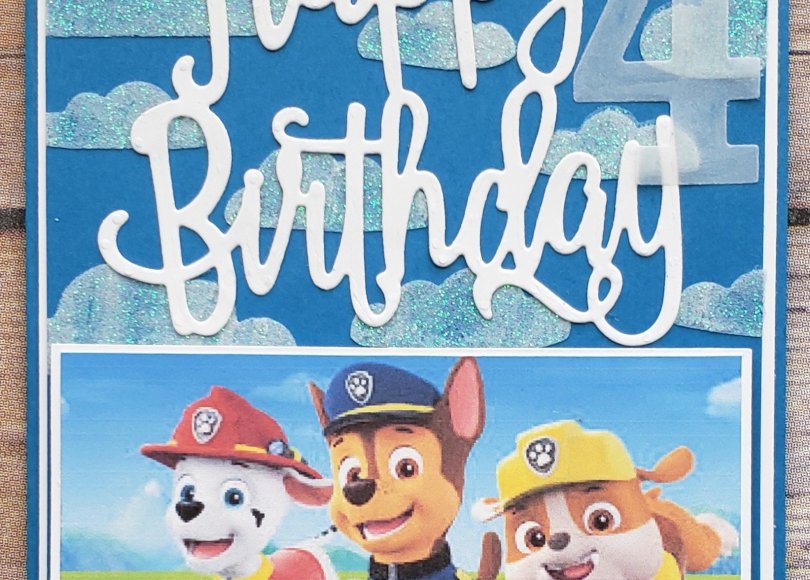My niece just held a birthday party for her 4-year-old son Phoenix and I had to ask; what does he want? I am so out of touch with all the toddler fads, what’s in and what’s out. My baby is 20! My niece Christina said Paw Patrol, PJ Masks and LeapFrog DVDs, ok what or who are they? So I had to look them up and Paw Patrol are cute puppies, PJ Masks are a Catboy, Owlette and Gekko. I knew about LeapFrog so it was easy enough to get him the DVDs. Now, what type of card to make… Paw Patrol puppies! Take a look further down for a full view of the card and the products I used to make it.