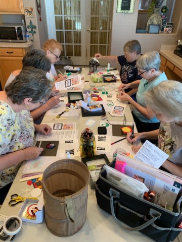 My friend Debra and I have held many Shadowbox classes but yesterday’s class was a bit different. Instead of the regular 12″ x 12″ size, we took it down a notch to 5″ x 7″.  We wanted to create something that you can put on a coffee table, desk or any other smaller area and keep it around all year long.