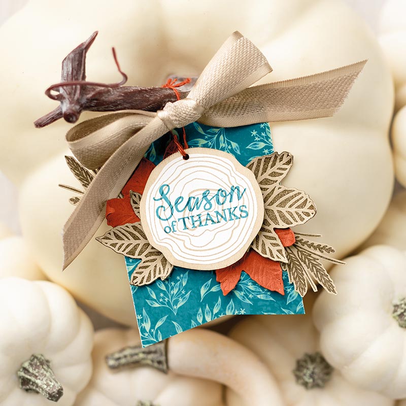Need a hostess gift or a touch of decor? Create this gorgeous tag and add it to a real mini pumpkin or make it last from year to year by adding it to a ceramic or fabric pumpkin. It’s a sure way to share your gratitude in style.